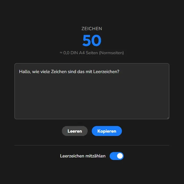 Je nachdem, für welchen Zweck du schreibst, werden Leerzeichen und Absätze unterschiedlich bewertet. Deshalb gibt dir unser Tool mit einem simplen Schalter die volle Flexibilität: